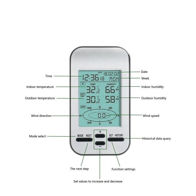 Terbuat dari anti hujan dan anti korosi UV dari teras,mengukur suhu udara,kelembaban